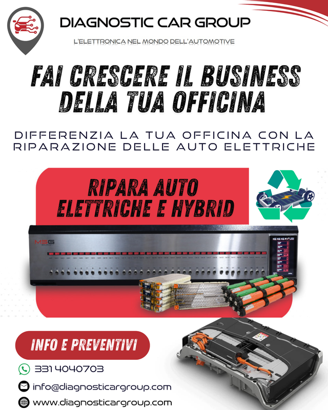 Contatta Diagnostic Car Group e amplia i servizi della tua officina con soluzioni dedicate ai veicoli elettrici e ibridi.